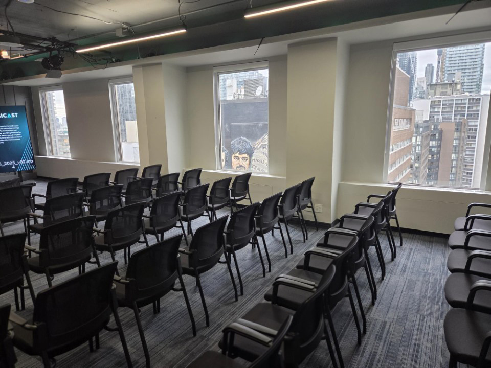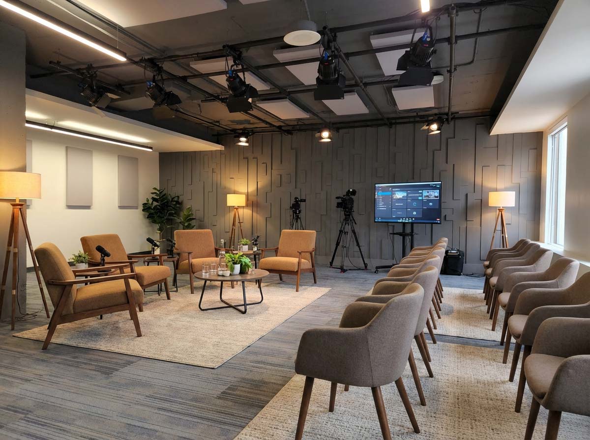 Un studio de diffusion clé en main avec des espaces de réunion polyvalents au centre-ville de Toronto, pour des événements fluides et des productions soignées.